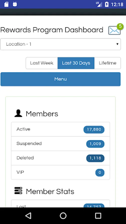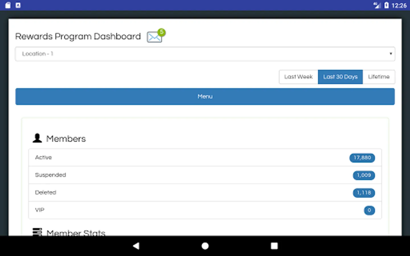 RepeatRewards customer loyalty client dashboard. Track your loyalty program membership program from the app with reports, insights into customer spending, and so much more. Features include: