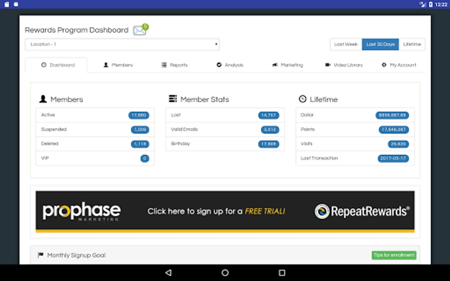 • Track the Lifetime Dollar, Points, and Visits of loyalty members