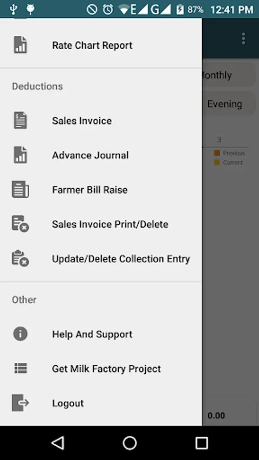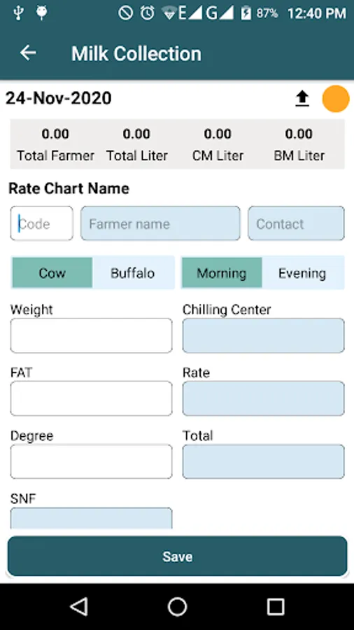 This Application use for Milk Collection Center, user can easily maintain milk data records. Farmer details use for add new Farmer on server using application and milk collection contain added farmer details, Milk rate etc.