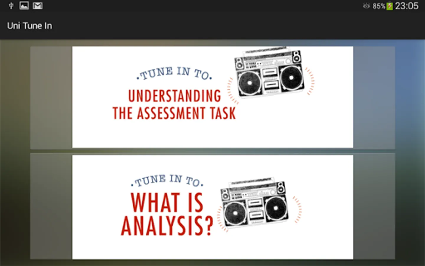 Are you new to university or college? Would you like some quick hints on study skills? Do you want to know how to write a great assignment? If you answered Yes to all three questions, then this is the app for you.