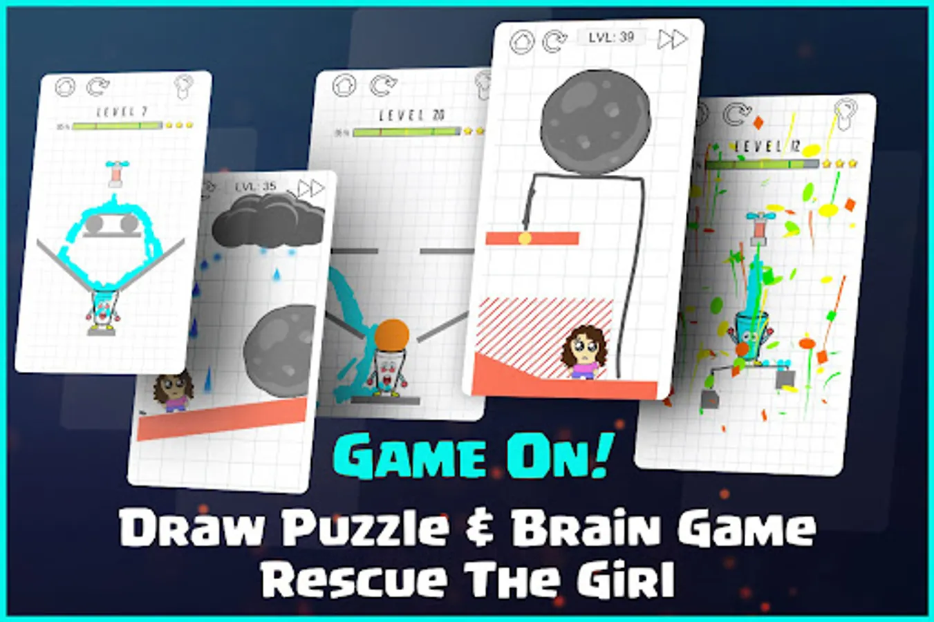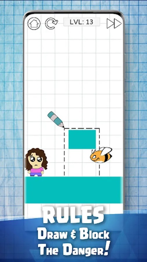 The girl is in danger and your job is to draw one part line sketch to rescue her from- falling rocks, angry bees, rocket ships, toxic water and other monsters. Your intellect is growing every time you play a drawing puzzle game with survival challenges.