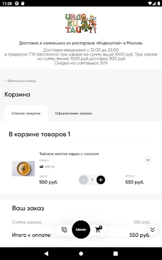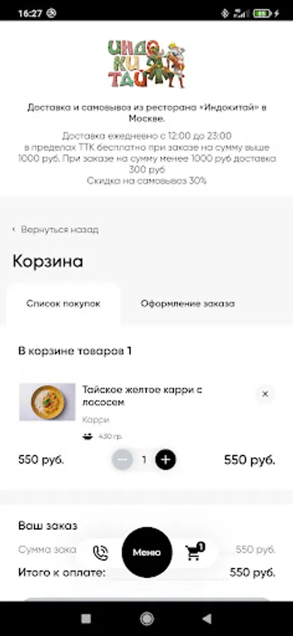 When ordering through the single service of Rappoport Restaurants, delivery is carried out within the Moscow Ring Road * free of charge with a minimum order. The cost of delivery for the amount below the minimum is 400 rubles. Cash and bank cards are accepted for payment. Loyalty program discounts do not apply.