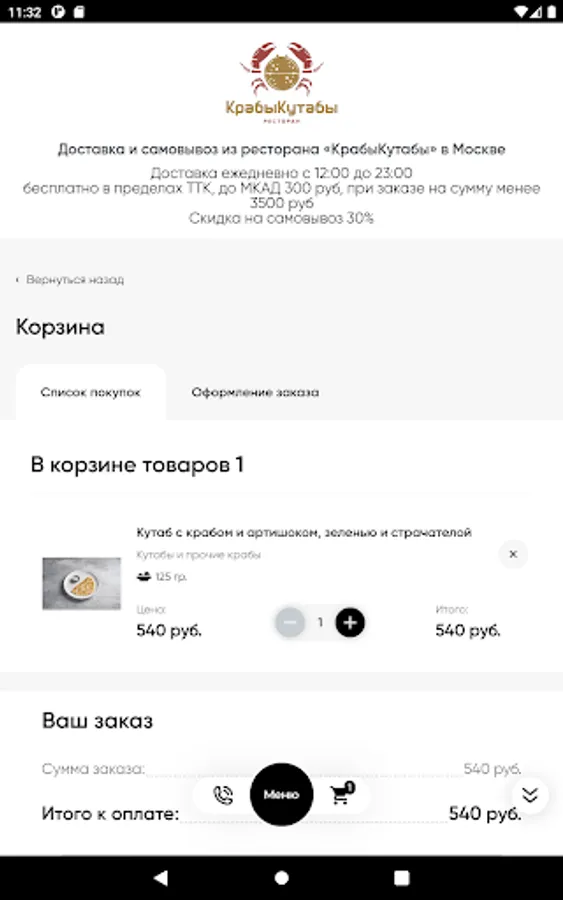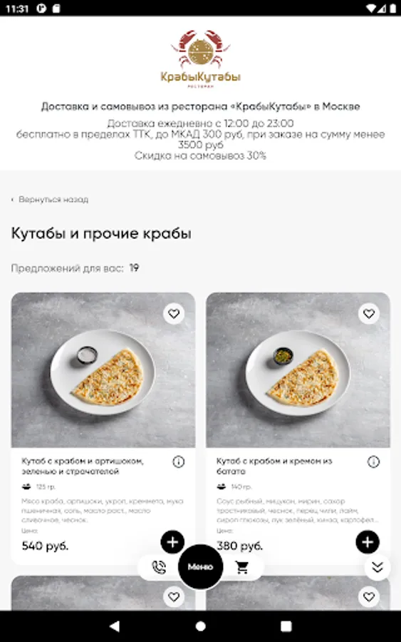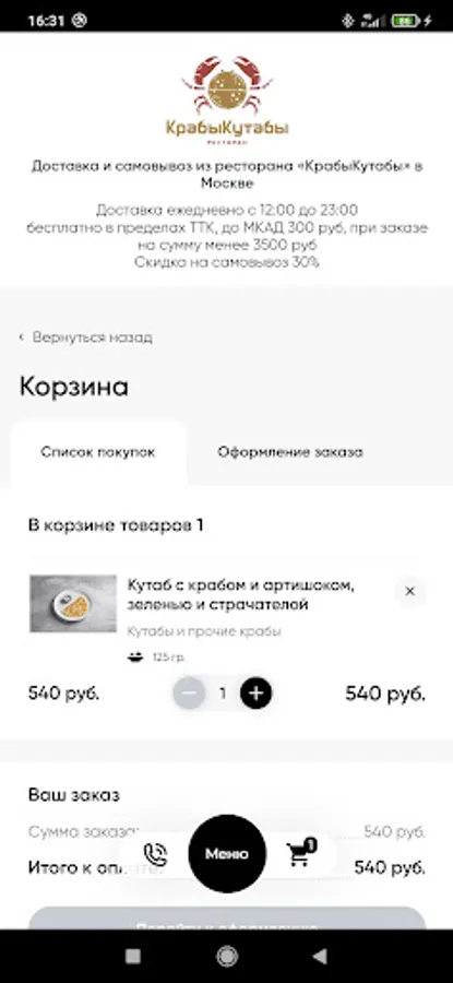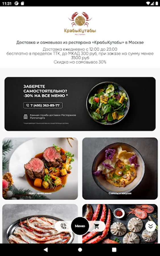 When ordering through the single service of Rappoport Restaurants, delivery is carried out within the Moscow Ring Road * free of charge with a minimum order. The cost of delivery for the amount below the minimum is 400 rubles. Cash and bank cards are accepted for payment. Loyalty program discounts do not apply.