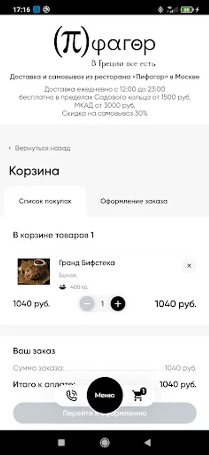 When ordering through the single service of Rappoport Restaurants, delivery is carried out within the Moscow Ring Road * free of charge with a minimum order. The cost of delivery for the amount below the minimum is 400 rubles. Cash and bank cards are accepted for payment. Loyalty program discounts do not apply.