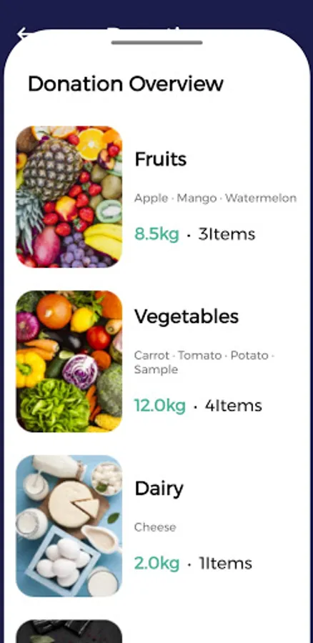 A donor can register and add a list of food items that wants to donate through the mobile app. NGO’s can request to pick up food from any donor that has listed the items via the mobile app, depending on proximity, points, and type/quantity of food. The donor can then accept the request and hand over the requested food to the person coming to pick it up.
