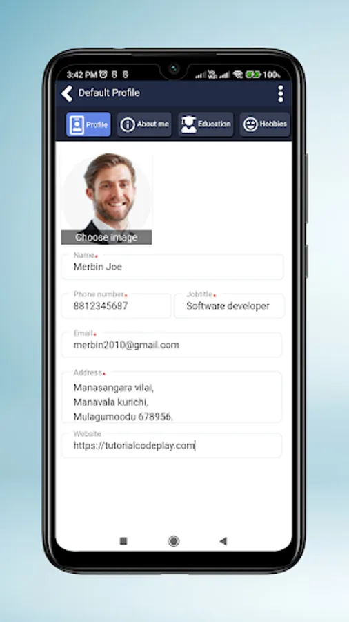 ♦ About me - Your introduction can enter here, depending on your selected template the app will automatically place you in the right place.