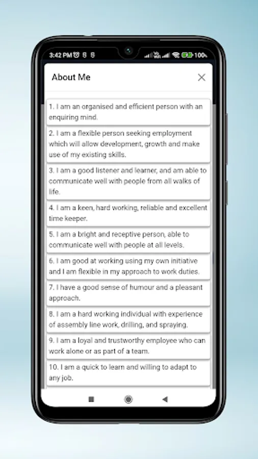 Offline support - This cv generator app supports and works 100% offline, so you can work without an internet connection which means the best offline resume builder application or offline resume maker app.