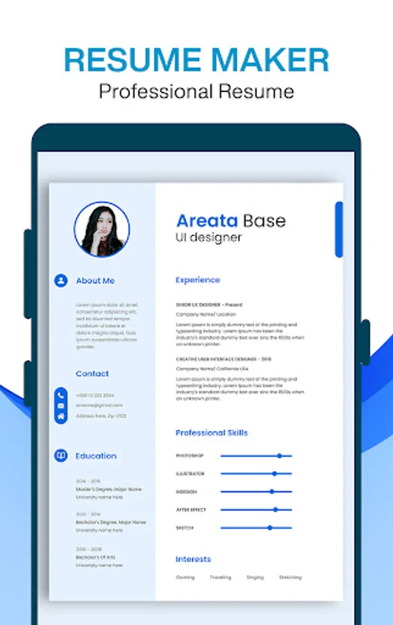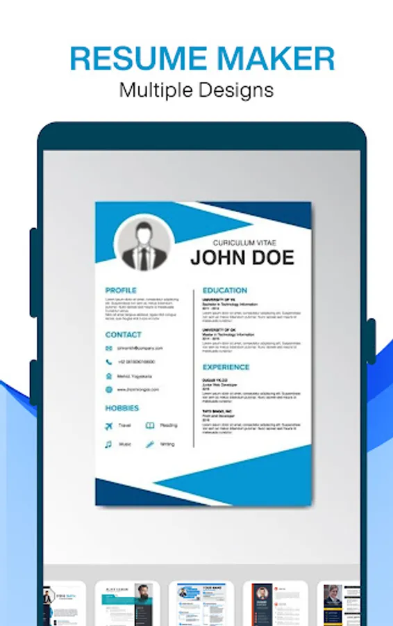 Resume builder app and CV Maker app will help you to create professional resume & Curriculum vitae for job application in few minutes. More than 50 resume templates available and each Resume template & CV template available. So you have 300 resume designs in offline and online.
