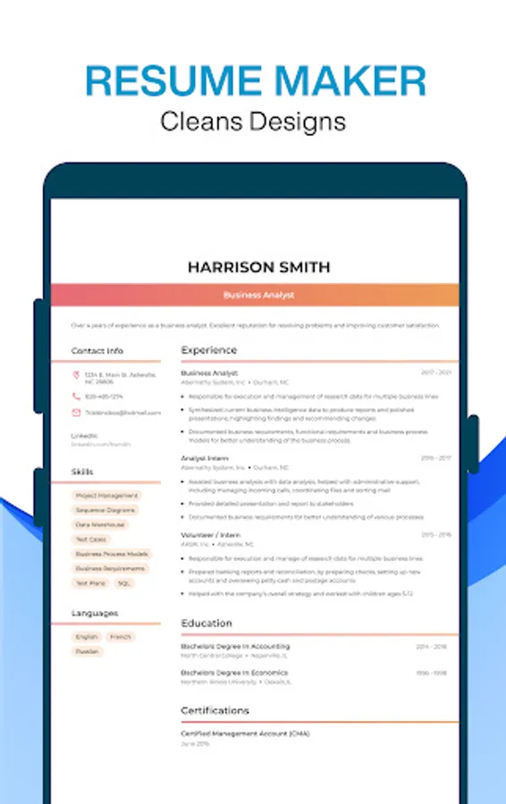 Create a modern & professional resume and cover letter with this CV maker app. Our resume expert's tips will help you how to write a good resume for 2022 trend for freshers and experienced. Prepare yourself ready for full time and part time work from home jobs. Resume writing tips will help you get more job offers in 2022.