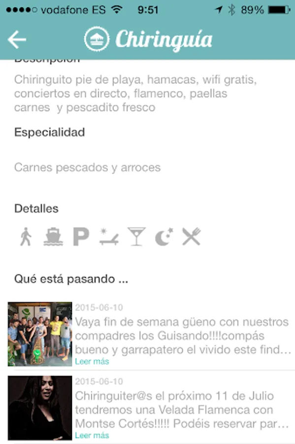 It also incorporates a wall of events that disseminates information posted on facebook bars. With Chiringuía you will be informed of everything that happens and receive notifications of premises marques as favorite or those who are on the radio that you define.