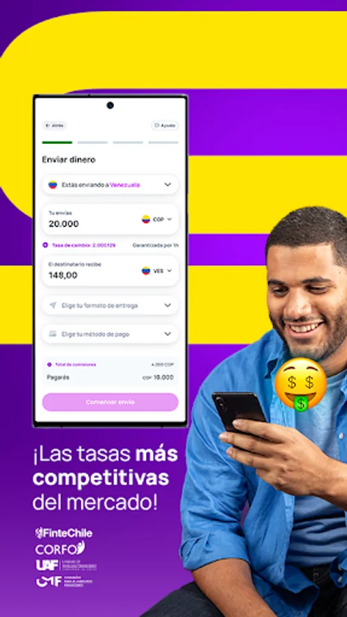 Quickly know the amount you can send. Select the country where you are located, write the amount you want to change and that's it, it is calculated automatically.