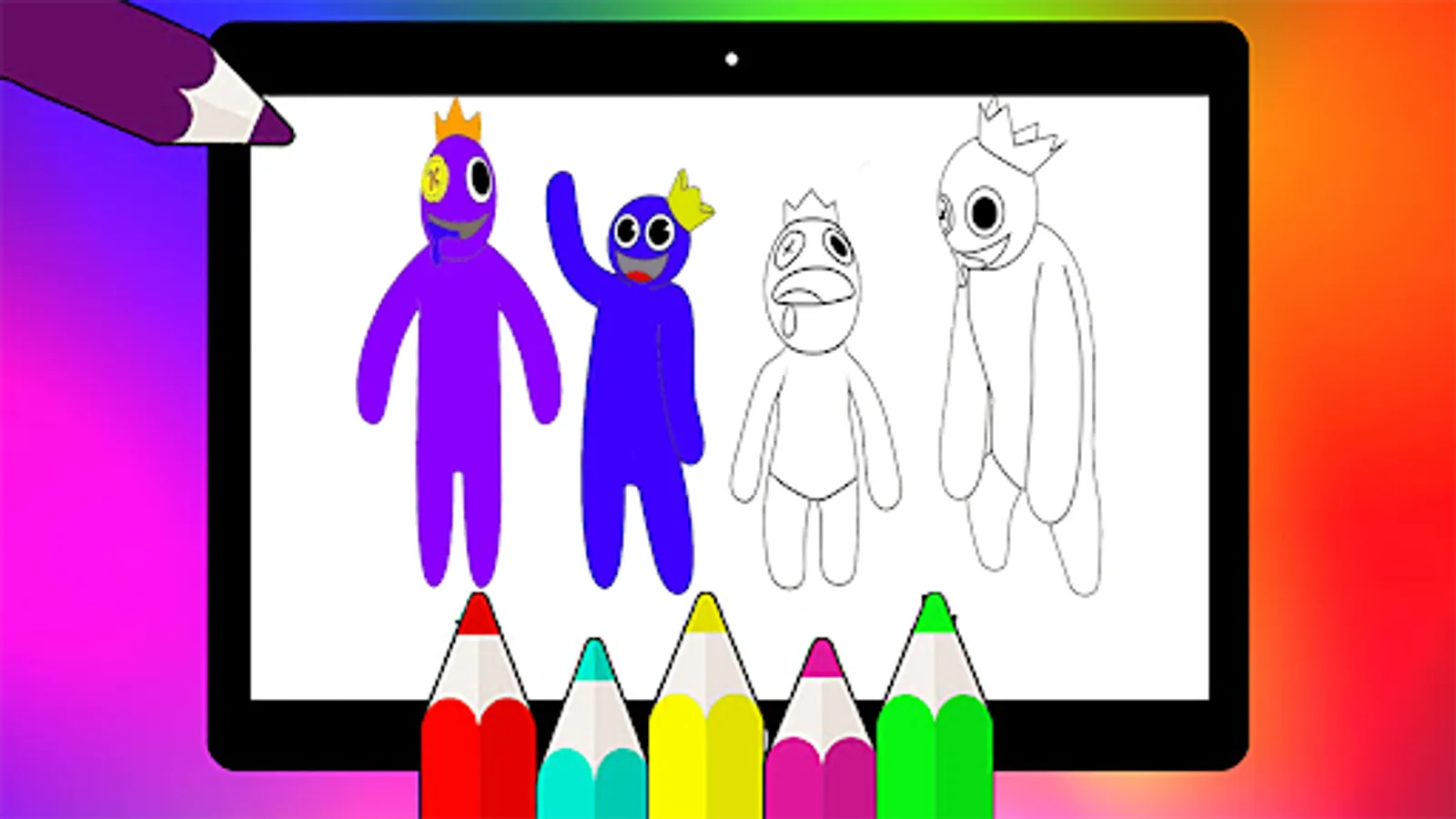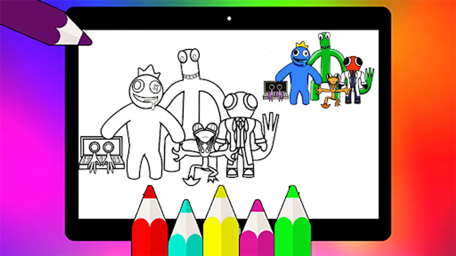 Rainbow Friends coloring book: Horror anime characters is an Android application that will increase the creativity in coloring an image, especially the characters of the Rainbow Friends series: Rainbow Friends yellow and pink, Green Rainbow Friends, Alphabet Lore, and many more...