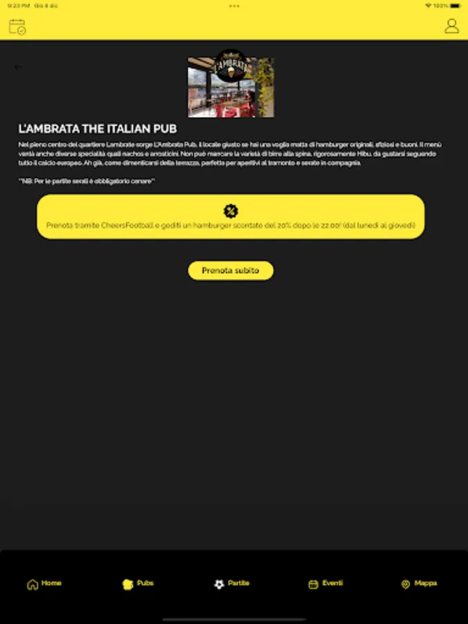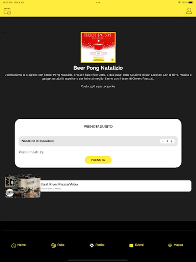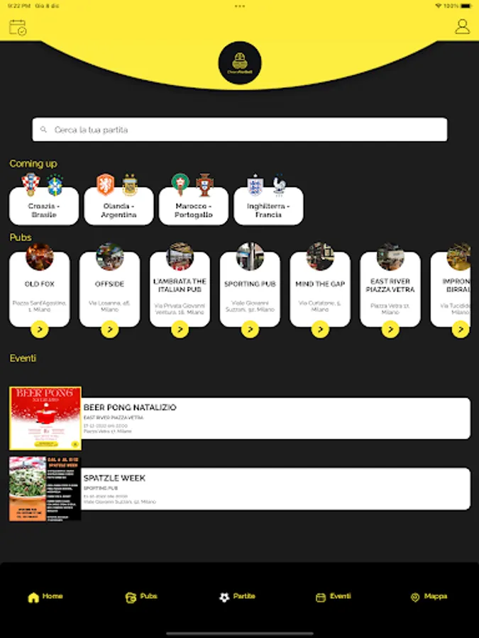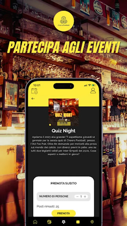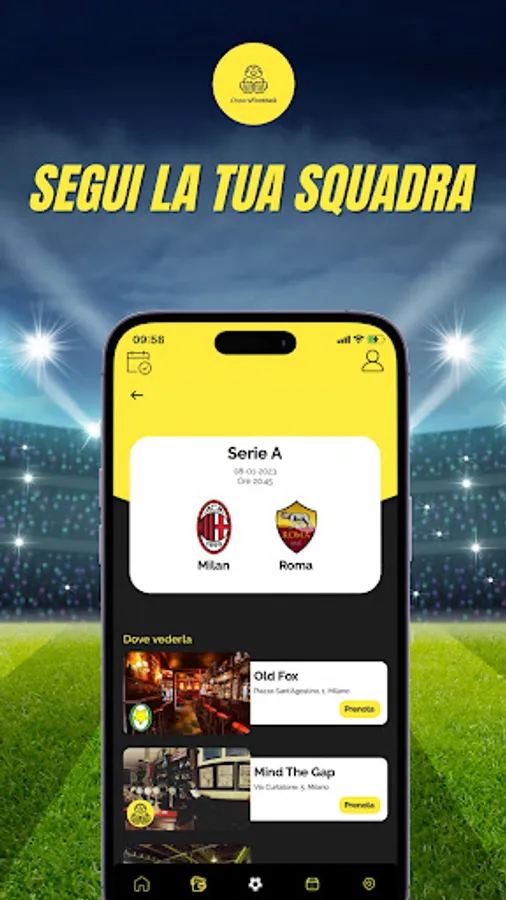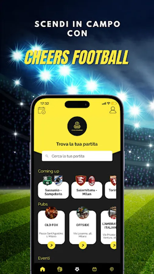 CheersFootball allows you to easily select the Milanese pubs based on the match you want to see, book a table for you and your friends and enjoy the evening without other worries!