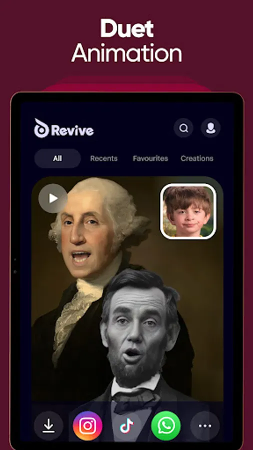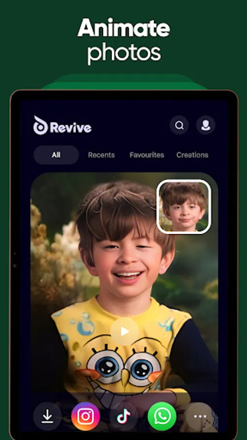 Create face animation with Revive's AI photo generator. Try face filters for photos & create funny videos.