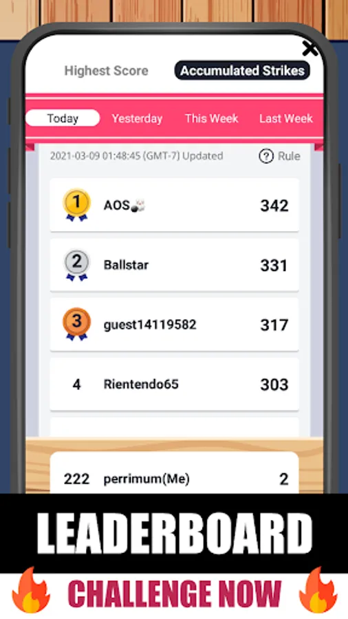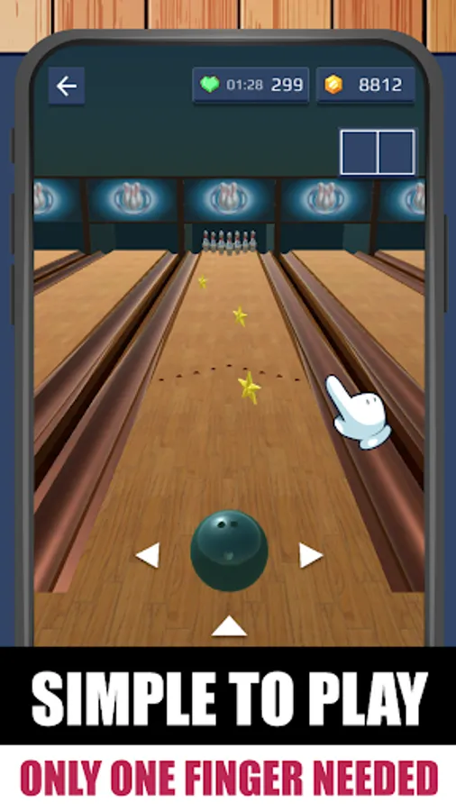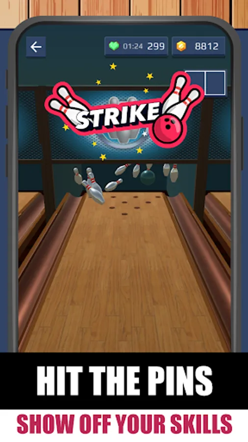🎳 Swipe up to bowl — The more pins you knockdown, the higher point you score