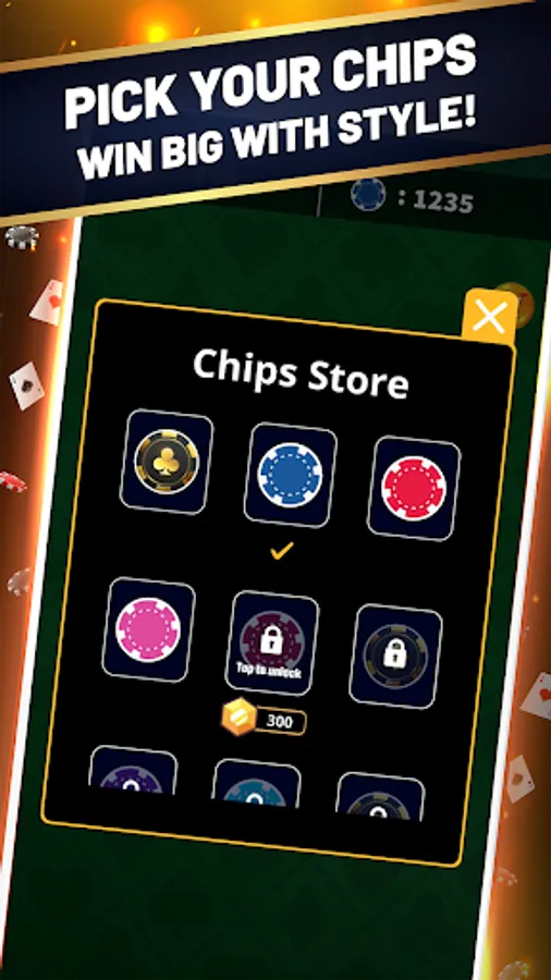● Win with Style - Many chip styles to choose from. Pick your poker style!