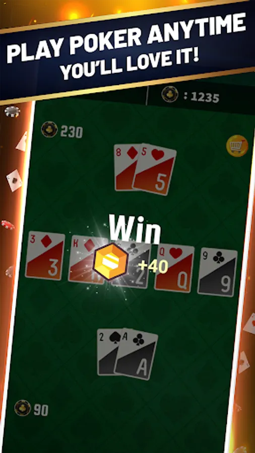 ● Fun Gameplay - Enjoy playing poker without ever having to pay!