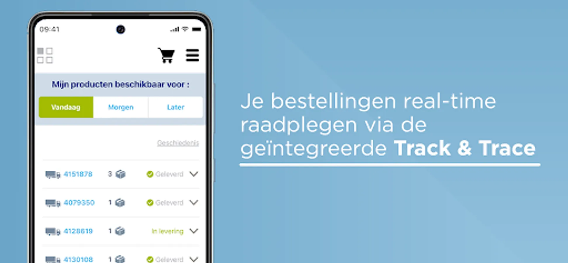 - Consult your orders in real time via the integrated Track & Trace