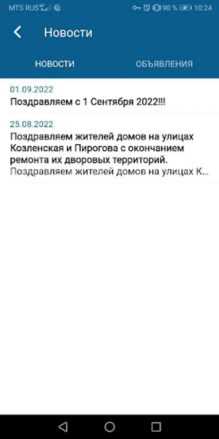 2) News - the latest news and announcements about your home