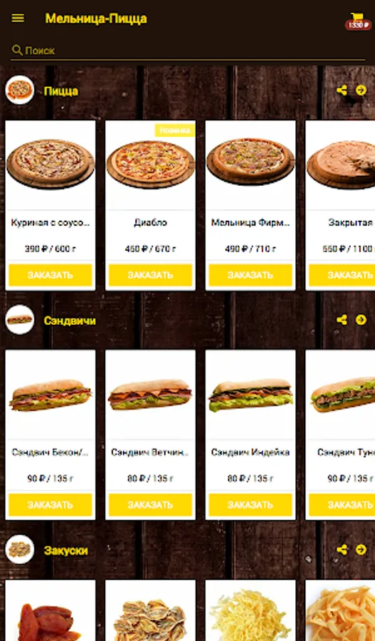 The network of stores "Melnitsa" is: fresh pastries, delicious pizza, fresh draft foamy drinks and a variety of snacks.