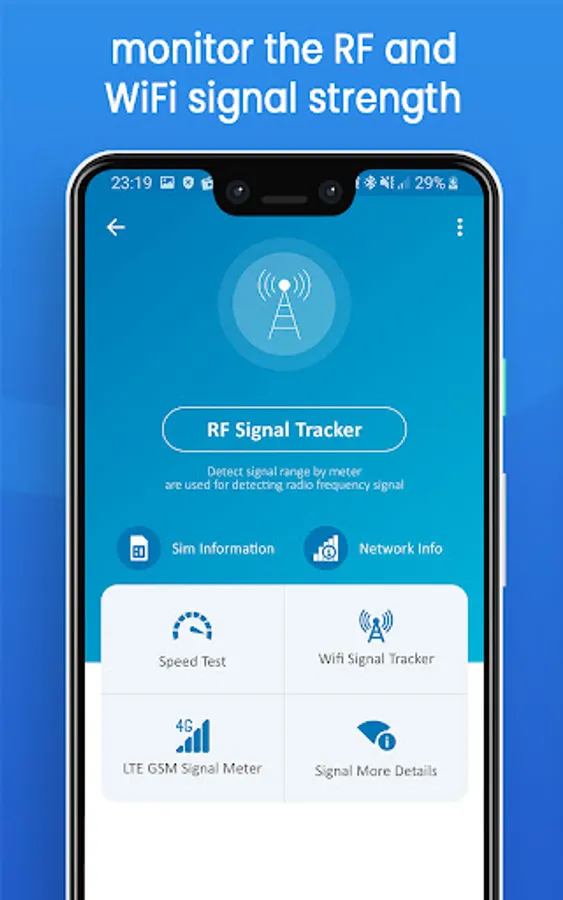 RF Signal Detector and RF signal Scanner is radio frequency app that can monitor your Mobile and WIFI Signal Strength in an instant! it can provide detailed information of signal strength. it can be used while travelling to know on which corner you are getting excellent signal frequency.