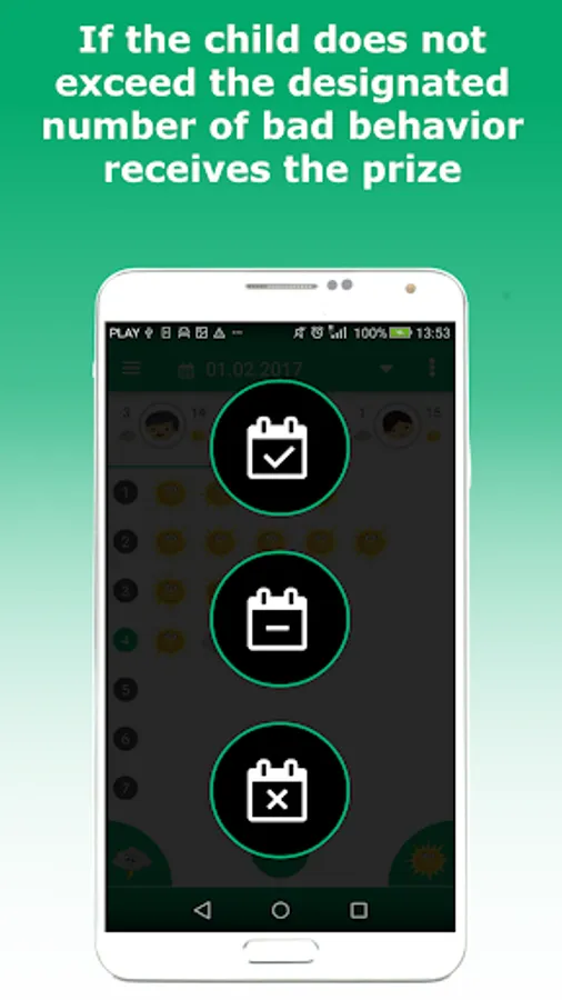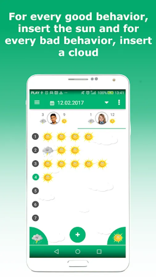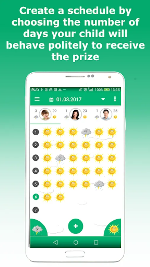 For every good behavior the child gets a sun sign, and for every bad sign of a stormy cloud (Signs for behavior can be changed). If he does not exceed the set number of bad behaviors after all days have elapsed, he will receive a designated reward.