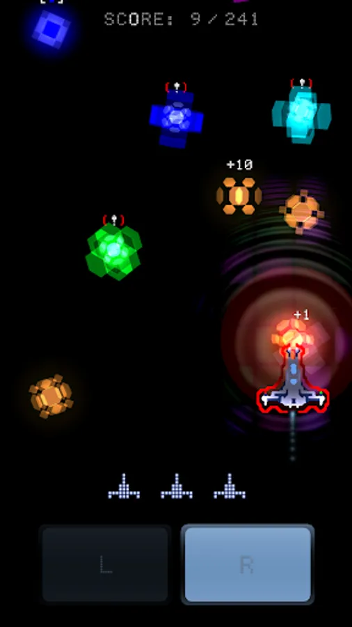* Sometimes the core escapes the crystal and is turned into a gem which is worth hunting too (score +10);