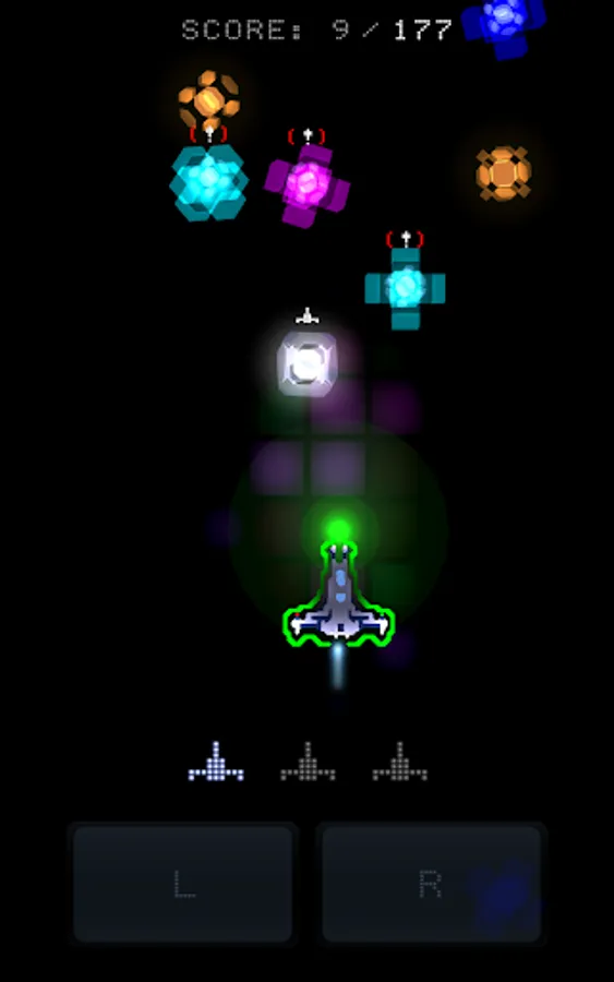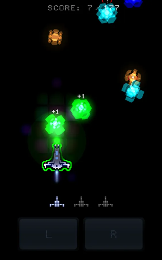 Your ship is hovering over the surface of Neon planet in search of cosmic gems.