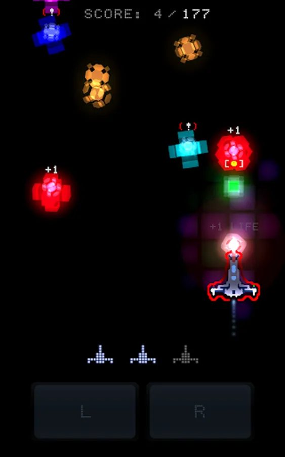 * Collide the plasma disc with crystals of the same color to extract crystal's core (score +1);