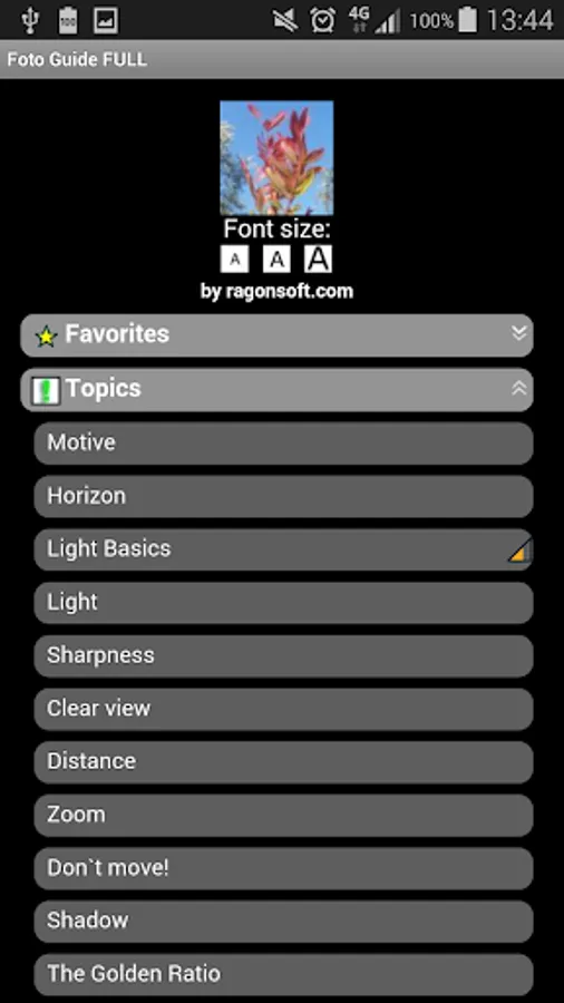 Guide and Trainer! Make better photos with digital or DSLR CAMERA CELL PHONE! Thanks to the "Ragonsoft Photo Guide FULL" applicable for almost any device. Get more out of your photos and you avoid some common pitfalls. This practical guide provides the fundamentals.