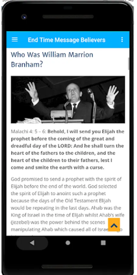 The man God chose to be the end-time prophet with the spirit of Elijah was William Marrion Branham. Born April 6, 1909, in Kentucky, USA, William Branham was a child destined to be the greatest prophet with the greatest ministry the world ever saw outside of Jesus Christ. This was the man God chose to forerun the second coming of Jesus Christ; his ministry had more supernatural and was more successful than what Jesus had 2000 years before. The success of the ministry and the supernatural that accompanied it was not because of William Branham, it was because the Lord Jesus was living in the prophet and proving to the world that He (Jesus) had come in the form of His Word to restore His chosen people back to the pure Word of Himself, and then Rapture such a people into His presence before the world is destroyed.