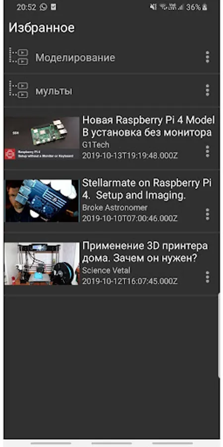 The program has the ability to add found videos to favorites, go to a channel, add channels to favorites.