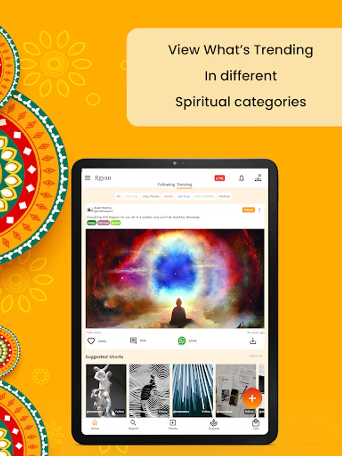-->Discover media posts, trending Short Videos based on Spirituality, Health Tips, Festivals, Rituals, Astrology, Meditation & Devotional Content categories.