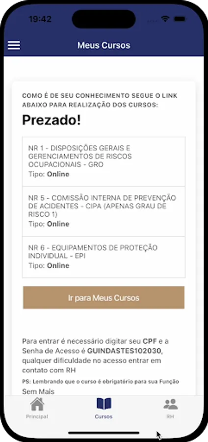 The GTRH Application is an exclusive tool for Guindastes Tatuapé employees, which offers an easy entry into a world of information and opportunities. In the first version, employees will have access to information about their training and certification courses available on the EAD platform, in addition to being able to talk directly to the Human Resources department through a ticket directly through the application. Don't waste any more time and start enjoying the benefits of the GTRH Application, which was developed with the aim of improving the journey of employees at Guindastes Tatuapé and promoting their well-being. Download right now and try it out!