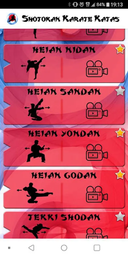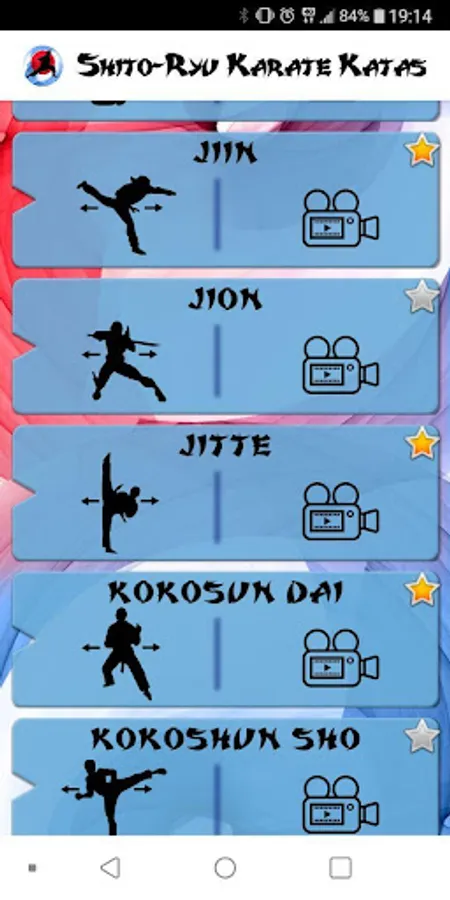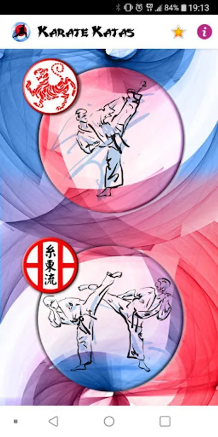 The app offers Karate Katas images and videos from Shotokan and Shito-Ryu styles.