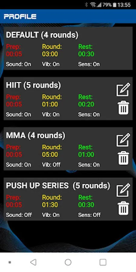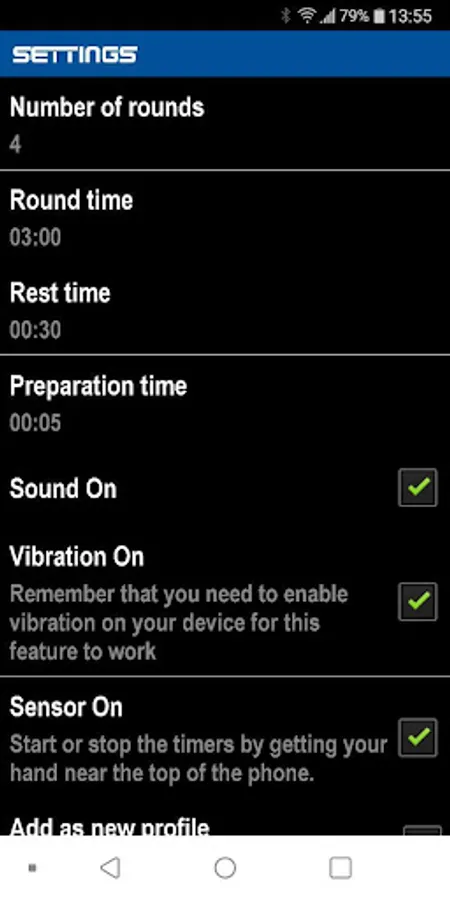 Boxing Round Timer is a superb training counter, since it lets you customize a series of rounds, and setting the number of intervals, preparation time, work time and rest time. Not only that, but eventually you can start or stop the timers by getting your hand near the top of the phone, also choose from sound and vibrate alerts, and then save all your setup in a profile to be used later.