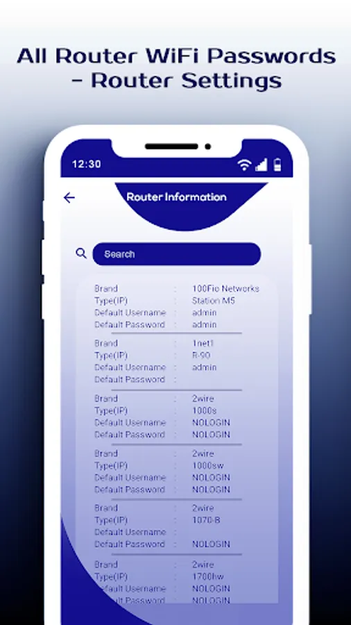 All Router WiFi Passwords DNS which help you to configure you WifI Router Settings Setup, or ROTER password settings configurations without using computer normal browser. Now it's easy to control or simply access into WIFI router settings with All Router WiFi Passwords DNS app. The app will try to find the IP of your router and connect to it automatically. View information about your network and connect with ease to your router with good user experience.