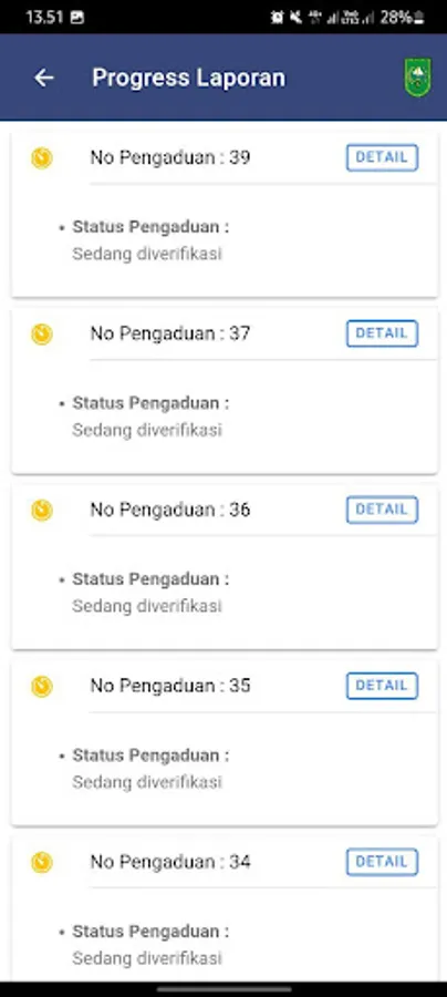 This application consists of several features that can be used by the user. Complaints, progress reports, usage information