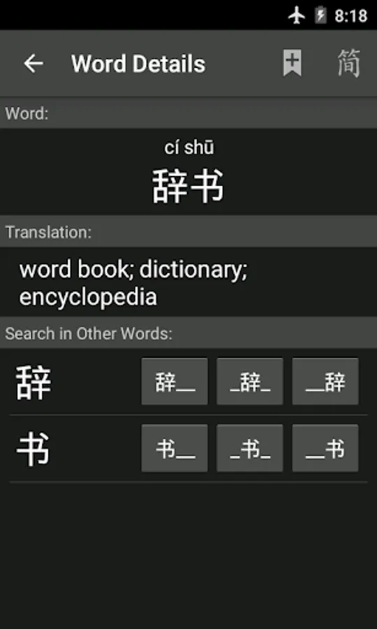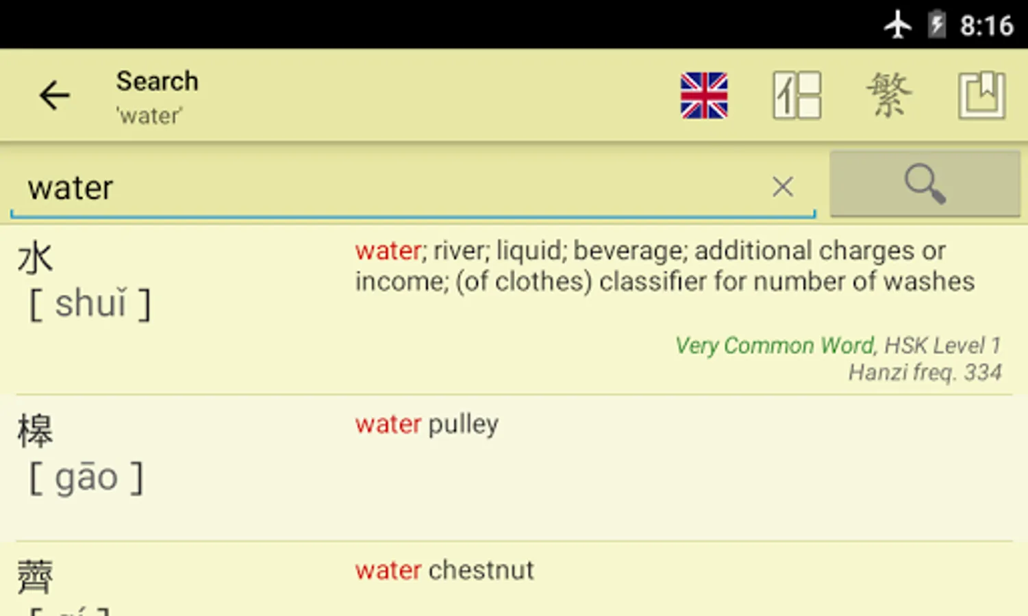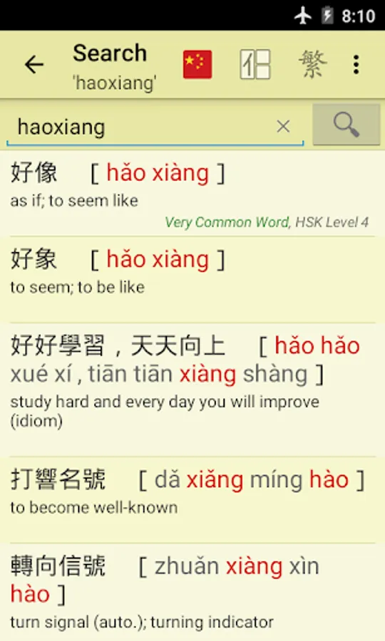 Cdian is a lightweight English-Chinese dictionary that presents clear and concise search results in a swift manner. You can search for words using Chinese, pinyin or English and display results in simplified or traditional text.