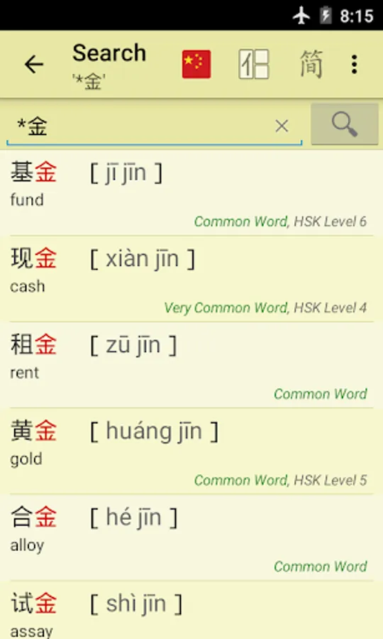 - Limited wildcard searching using '*' (ZH only and slower than normal searching)