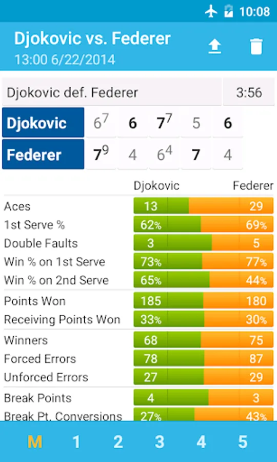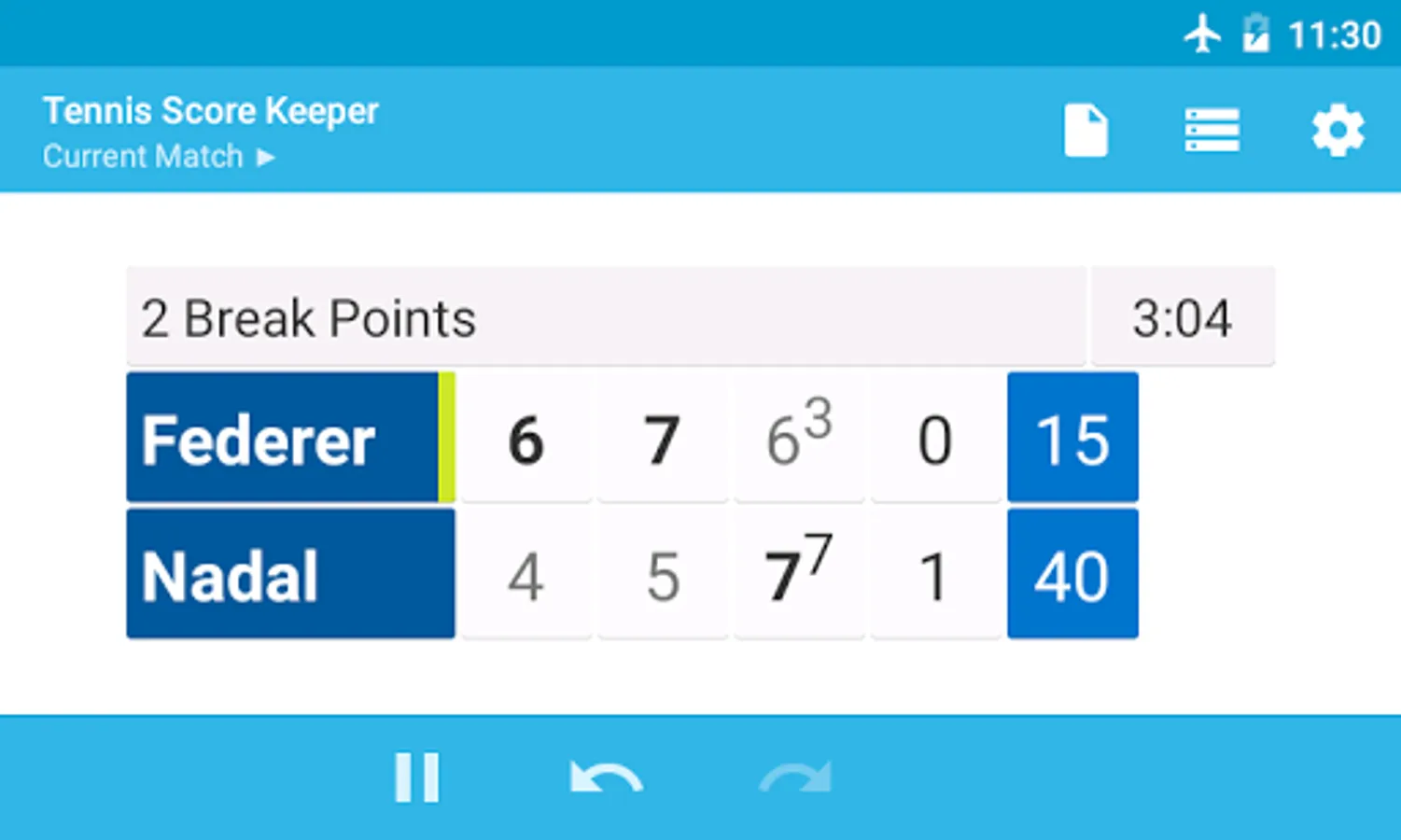 Keep track of the score and statistics of your tennis matches with this easy to use tennis score keeper app. Match statistics are also recorded to assist you in finding weaknesses in your game.