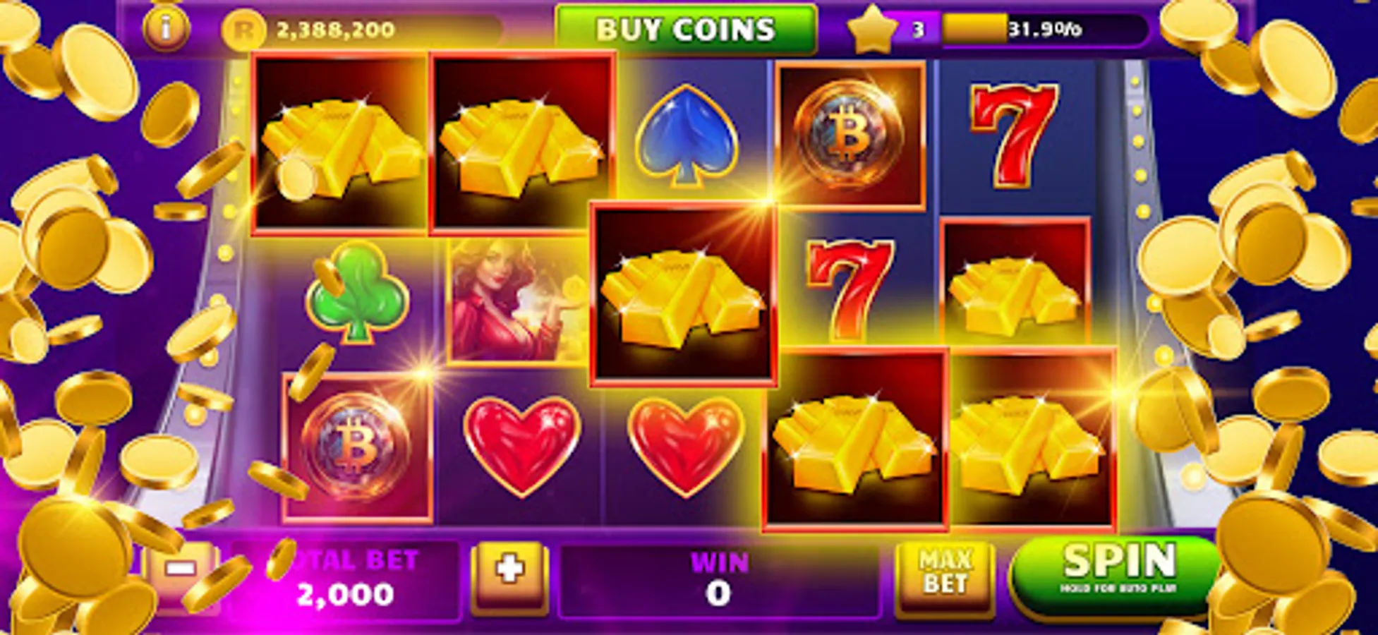 Each spin will offer you different surprises! After the spin, you have the chance to double your winning coin with fold minigame. Get ready for an adrenaline rush!