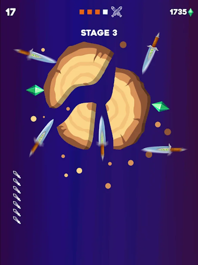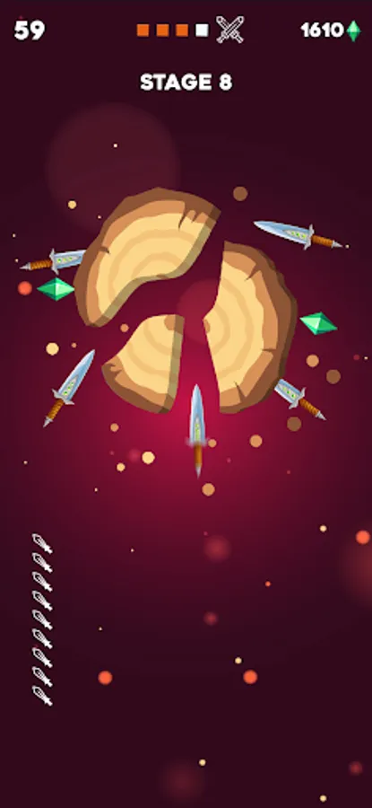 -Keep an eye out for diamonds that occasionally appear. If you successfully hit an diamond with a knife, it will be cut in half, and you'll earn an additional point.