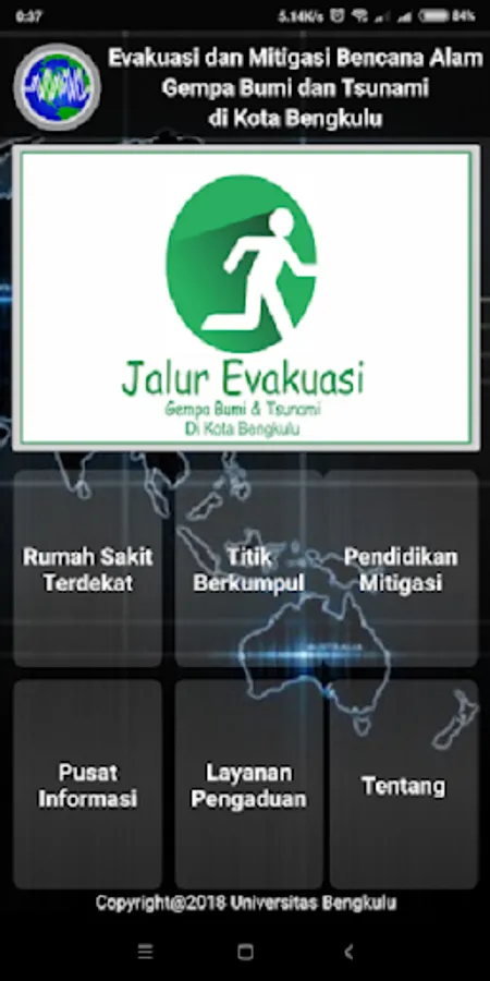 This application is useful as a preparedness education in finding an evacuation route to the nearest gathering point in Bengkulu City. The "Evacuation Mitigation" application is under the umbrella of the Bengkulu City disaster mitigation research activity, which consists of: