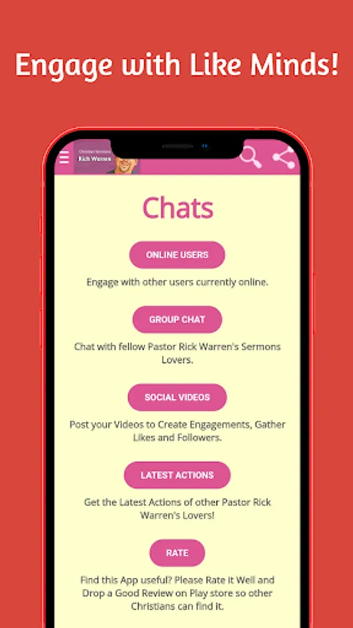 The Pastor Rick Warren's Ministries Christian Books & Sermons App makes it easier than ever to access Richard Duane Warren's teachings through his Books and Sermons at home or on the go. Best of all? It’s constantly updated with the latest content.