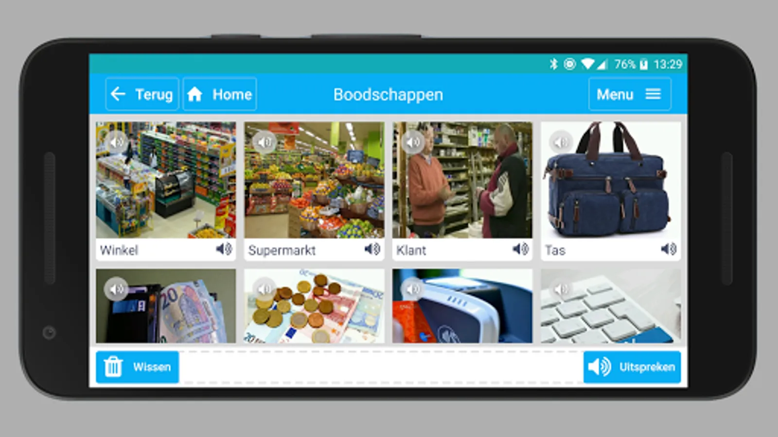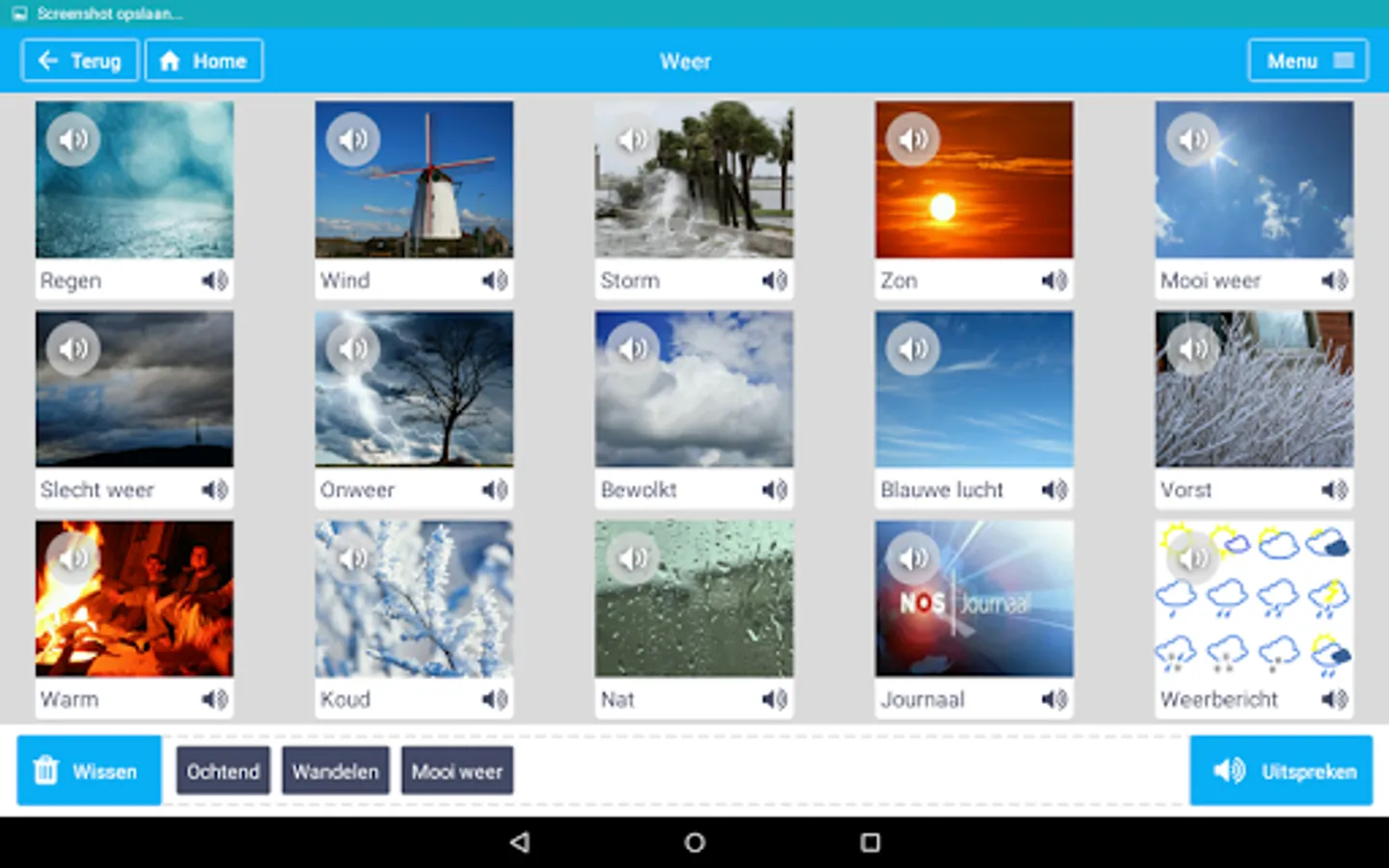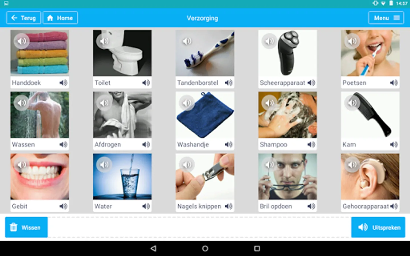Express Me is an app that helps people with speech difficulties to communicate in daily life. Through words tiles category, the user can look up words and be spoken by the app. It is possible to manually add words and categories to the application.