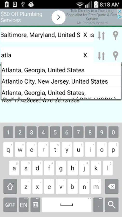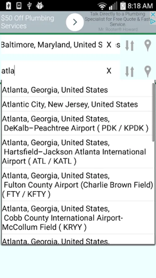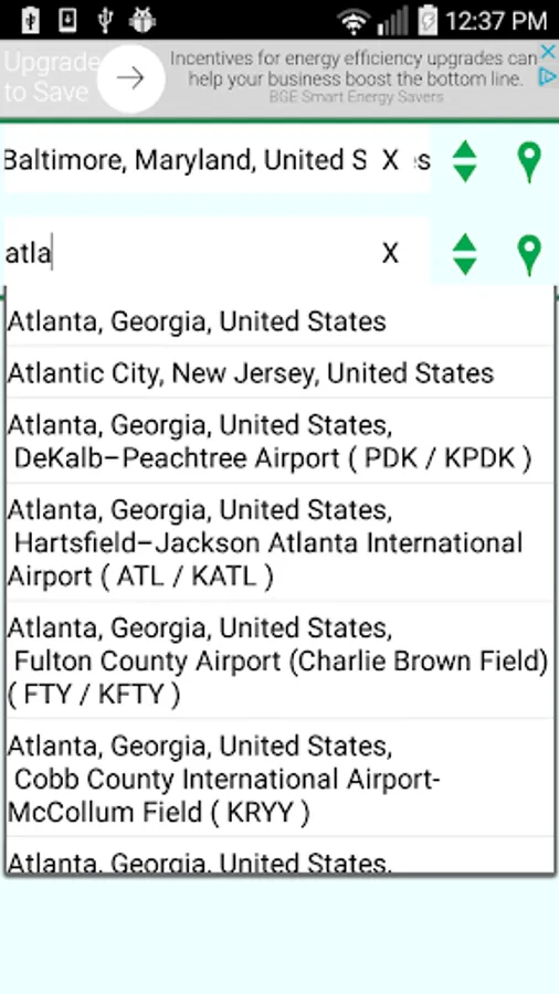 - Direct GPS route shown in a world map between the cities and/or airports.