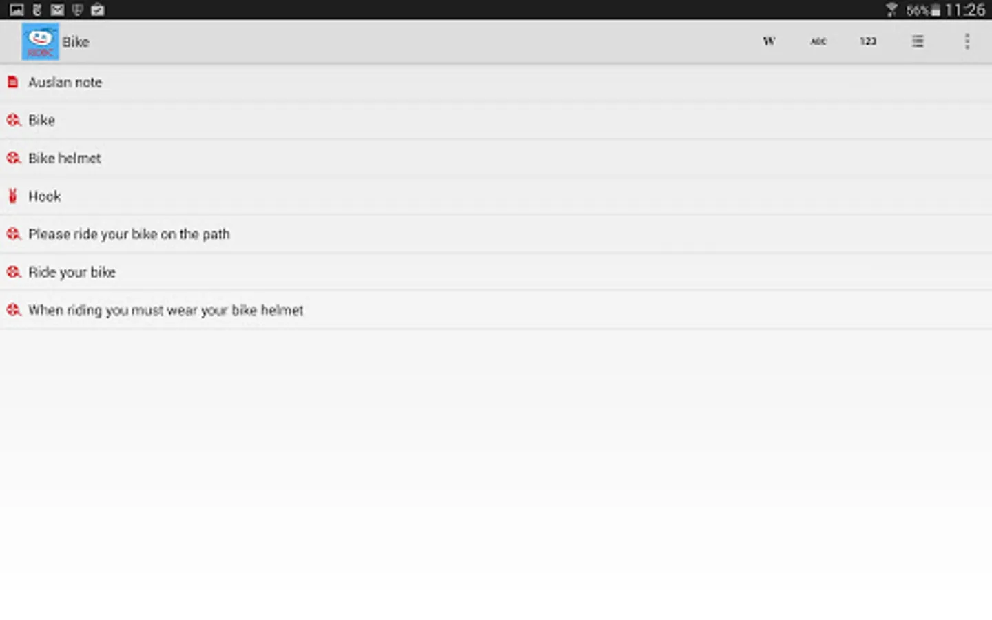 The NextSense Auslan Tutor moves beyond the basic premise of teaching individual signs by including five corresponding entries for each sign. These five entries are: