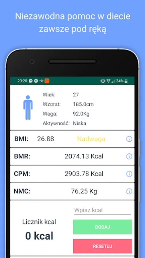 The application allows you to easily and quickly check various dietary indicators. This is invaluable help when planning and implementing a diet.