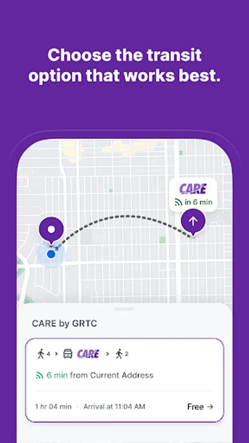 To get started, enter your phone number to log into your account. Then, schedule your ride with just a few taps - enter your pick up and dropoff address, and select the date and time for your ride. Finally, you can open the app near the time of your ride to monitor your vehicle on its way. The CARE by GRTC app lets you book one-time trips, standing trips, and view or cancel future trips.